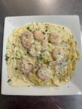 White pizza, topped with our fresh bruschetta mix. With shrimp