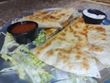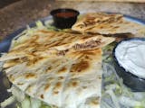 Delicious homemade garlic knots bread with grilled chicken our signature chorizo topped with fresh onions, cilantro and provolone cheese serve with French fries